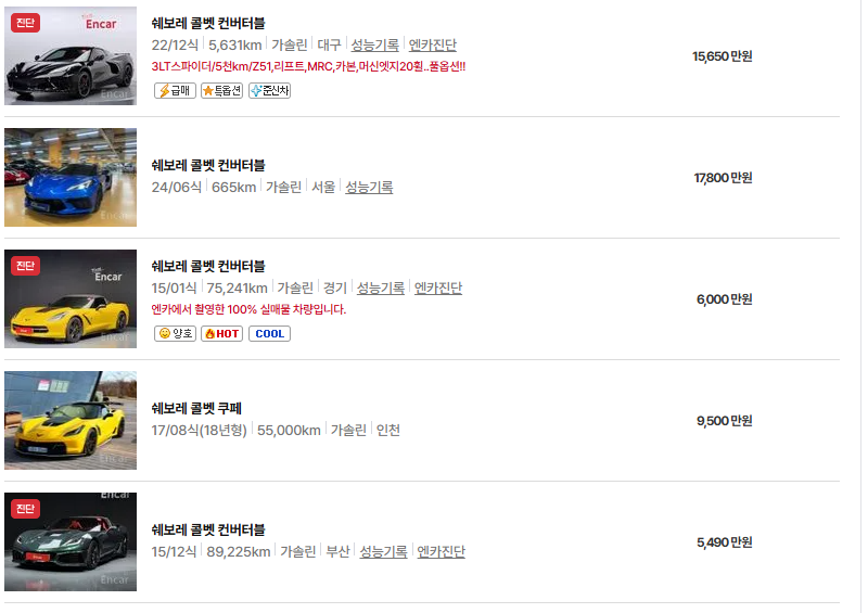 쉐보레 콜벳 중고차의 가격은 최근 몇 년간 꾸준히 상승세를 보였습니다.