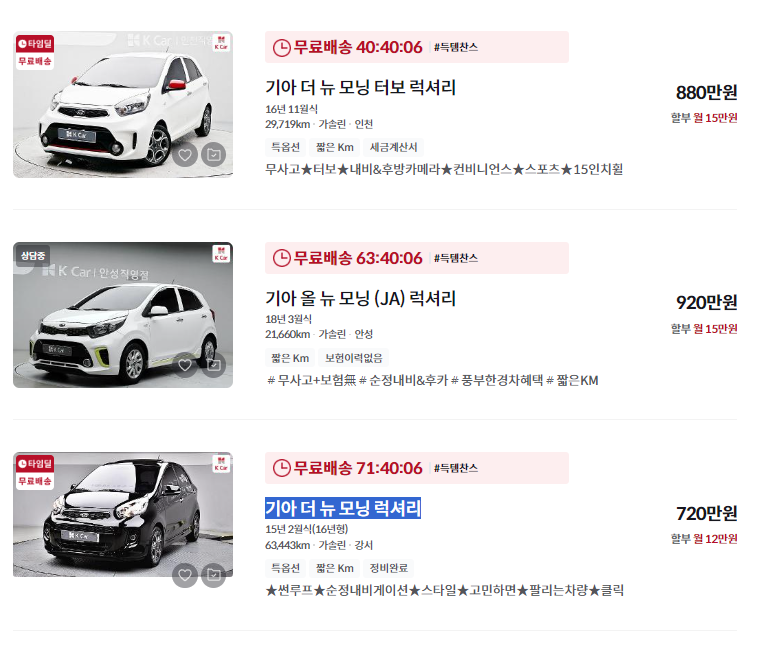모닝 중고차 구매 팁