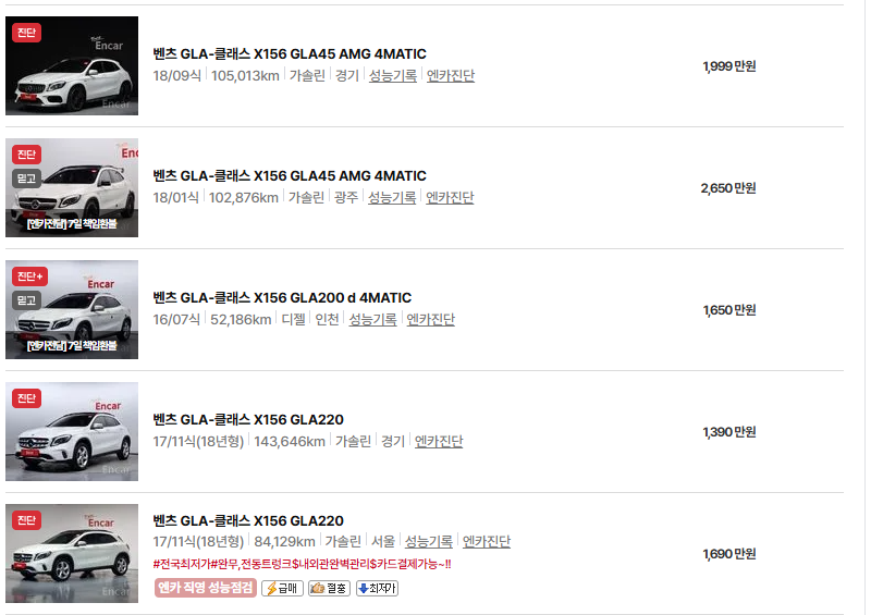 ✅[아래의 우리나라 대표 중고차 매매 사이트인 kb차차차 , sk엔카직영몰 , 케이 카 직영 몰 에서 벤츠 GLA 클래스 중고차 실매물을 1분 만에 확인해 보세요.]