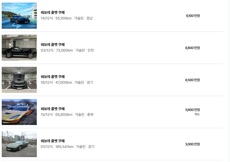 콜벳 (2005 ~ 2013년) : 2,500 ~ 4,000만원