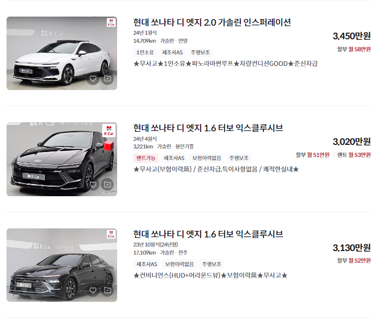 ✅[아래의 우리나라 대표 중고차 매매 사이트에서 쏘나타 중고차 실매물을 확인해 보세요.]