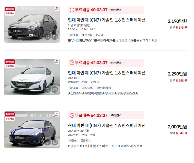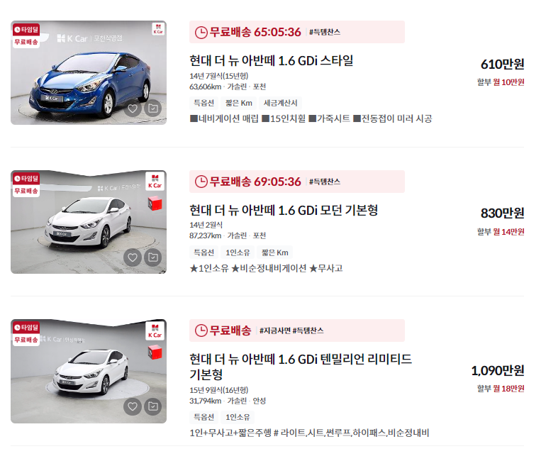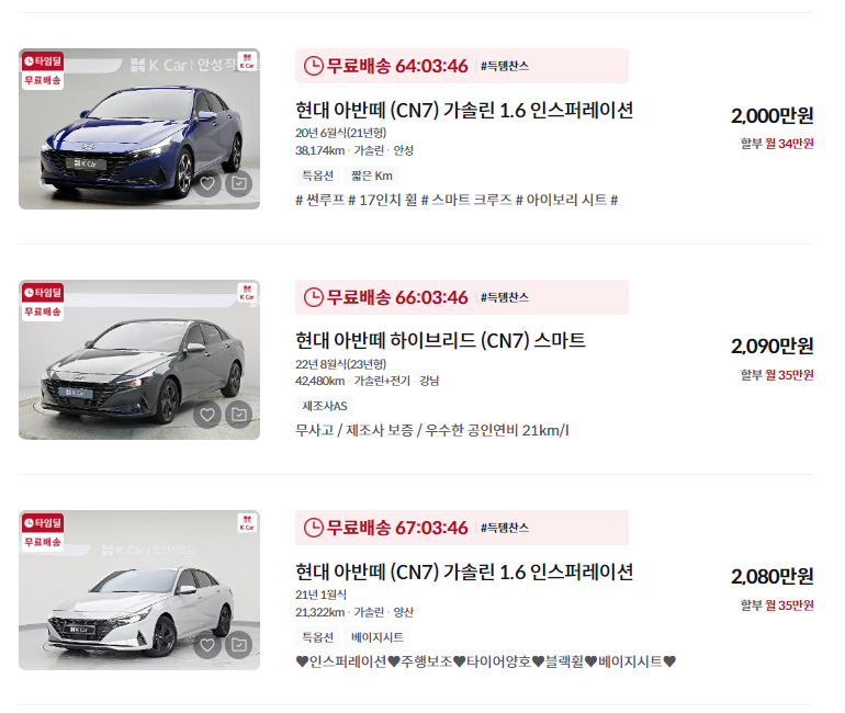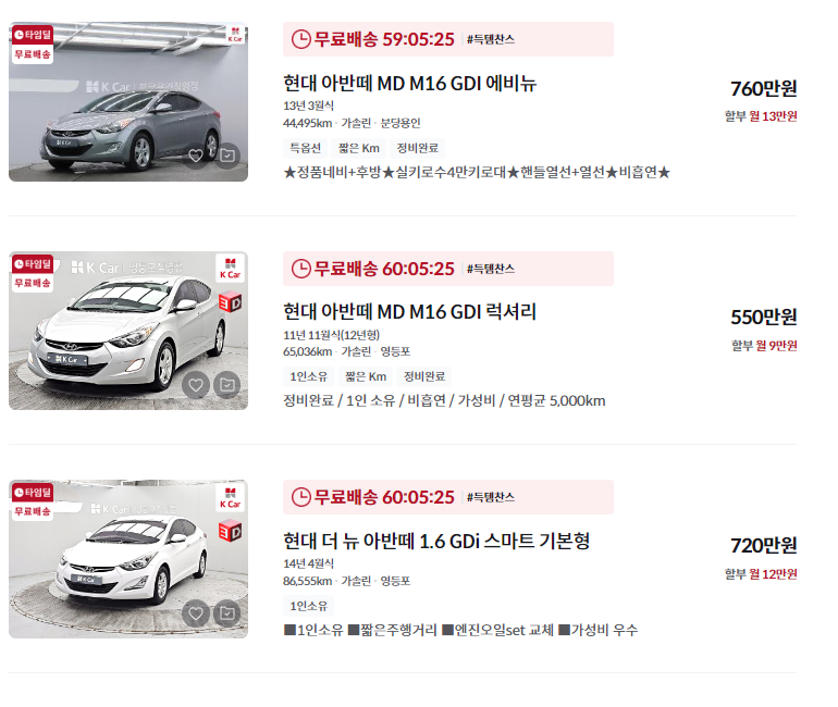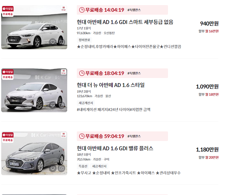 관련 키워드: 아반떼 중고차, 아반떼 가격, 중고 아반떼, 현대 아반떼, 아반떼 시세