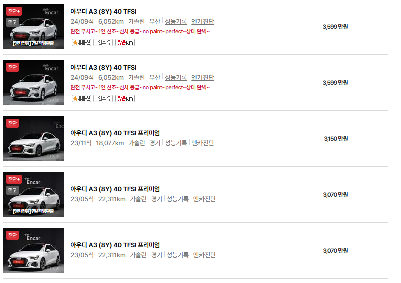 특히 수입 준중형 세단인 아우디 A3는 고급스러움과 실용성을 겸비한 모델로, 20~30대 소비자층 사이에서 꾸준한 수요가 유지되고 있습니다.