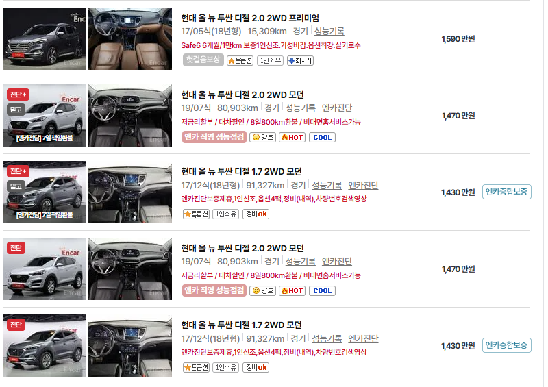 ✅ 아래에서 유지비가 저렴한 현대 투싼 중고차 실매물을 찾아 보세요